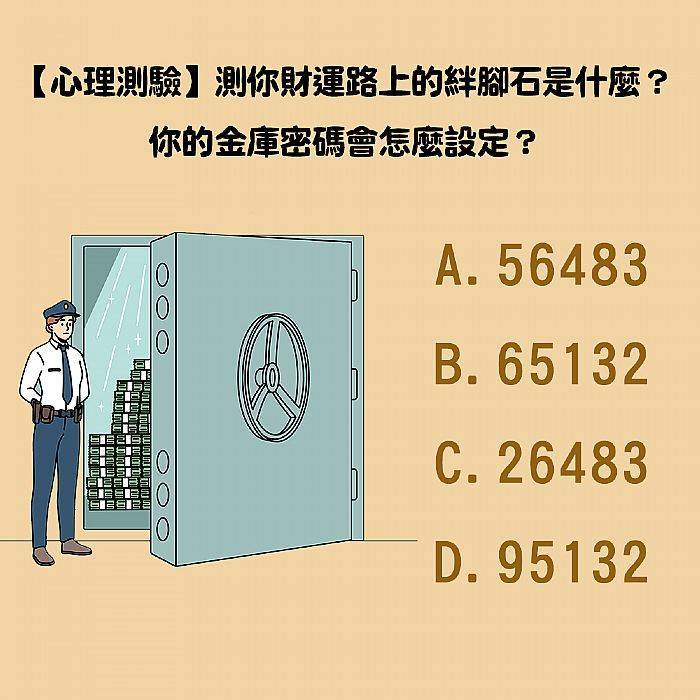 測你財運路上的絆腳石是什麼?你的金庫密碼會怎麼設定?